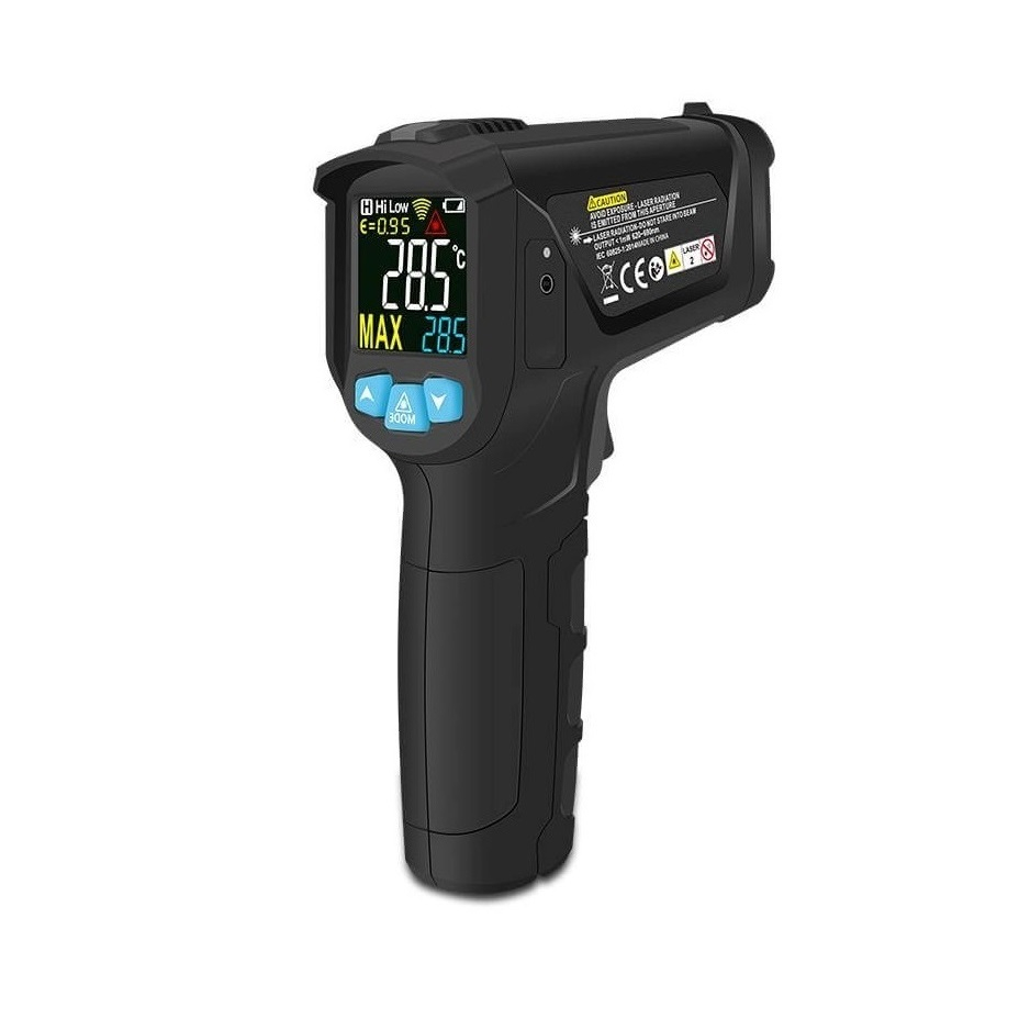 Z infrardečim laserskim termometrom z nastavljivo emisivnostjo lahko enostavno opravite brezkontaktne meritve temperature na različnih površinah.